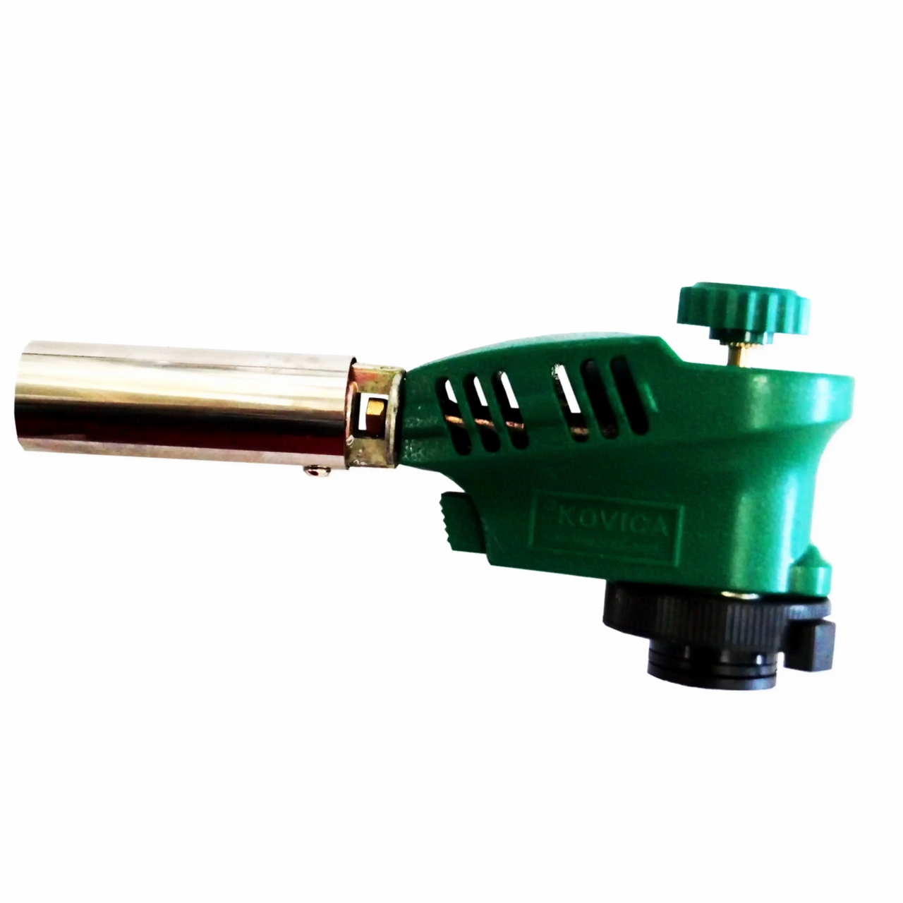 Горелка оснащена пьезоподжигом и вентилем тонкой регулировки пламени. Для работы потребуется балонн на основе газа пропан/бутан.