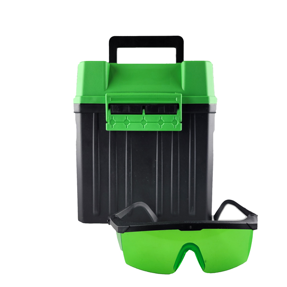 В комплекте поставляется: уровень, кейс, очки, ремень, зарядное устройство.