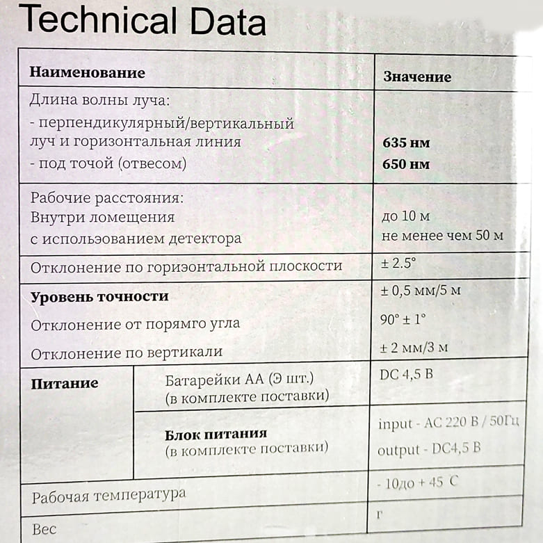 Точность, мм/м: 0,25